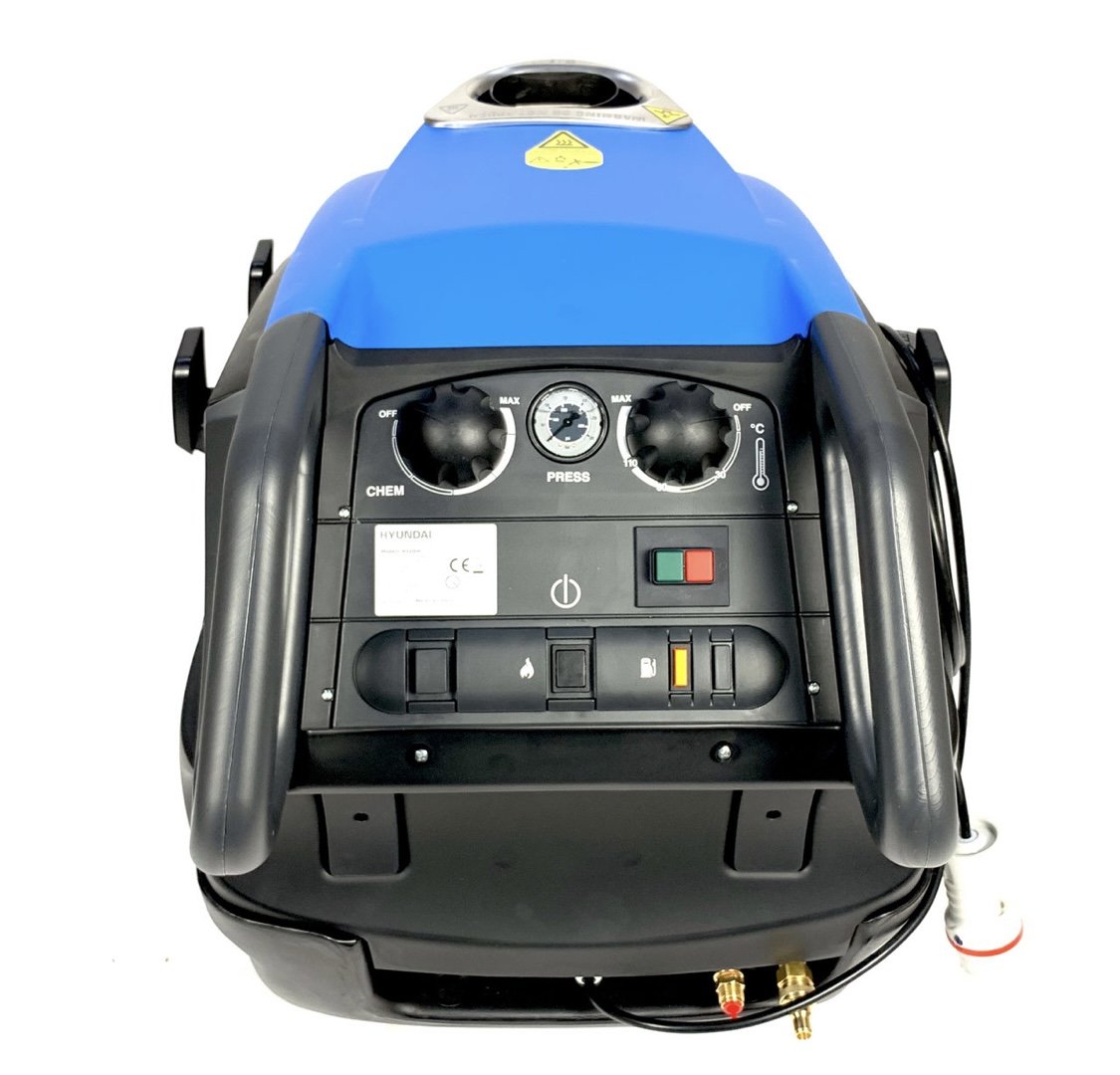 Deze driefase 1450 RPM 400V heetwater stoom HY200H hogedrukreiniger van Hyundai Power Products is een professionele machine met hoogwaardige pomp. Deze machine is ontworpen voor de meest veeleisende professional die vet vuil of motorolieresten moet verwijderen.